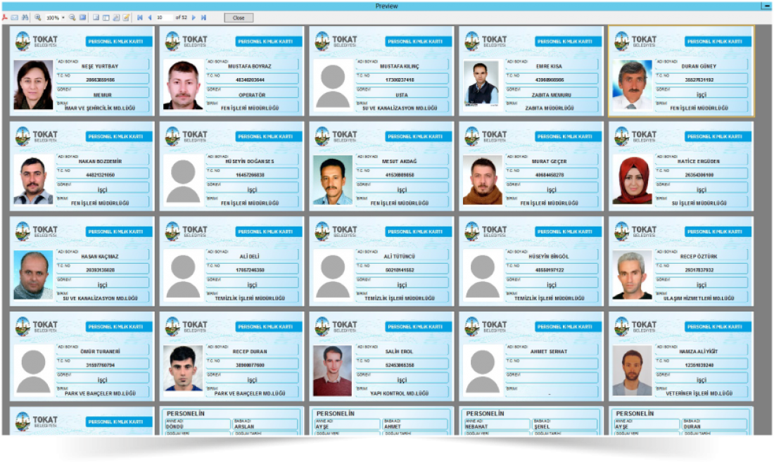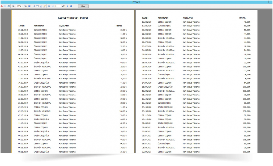 Yazılım kullanıcılara dağıtılan kartları toplu veya tek tek baskı yapılabilmesini sağlayan raporlama sistemine sahiptir. Bazı kurumlar kart tasarımı yaparak bu kartları personel kimlik kartı olarak, yemekhane giriş kartı olarak ve kurum giriş/çıkış sisteminde kullanmaktadır. Bunu yapabilmeniz için tek ihyitacınız olan şey kart baskı cihazıdır.