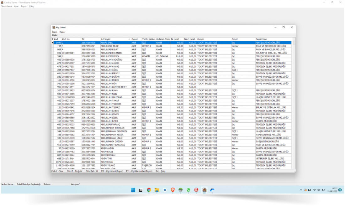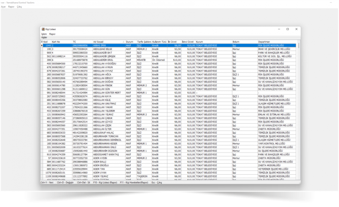 Detaylı tarife tanımları sayesinde personellere kamu mevzuatına uygun şekilde ilk ve sonraki yemekhane girişleri ayrı ayrı fiyatlandırılabilmektedir. Bu şekilde memurların kademesine göre verilen yemek desteği kolayca ayarlanarak maaşlarından kesilebilir.
