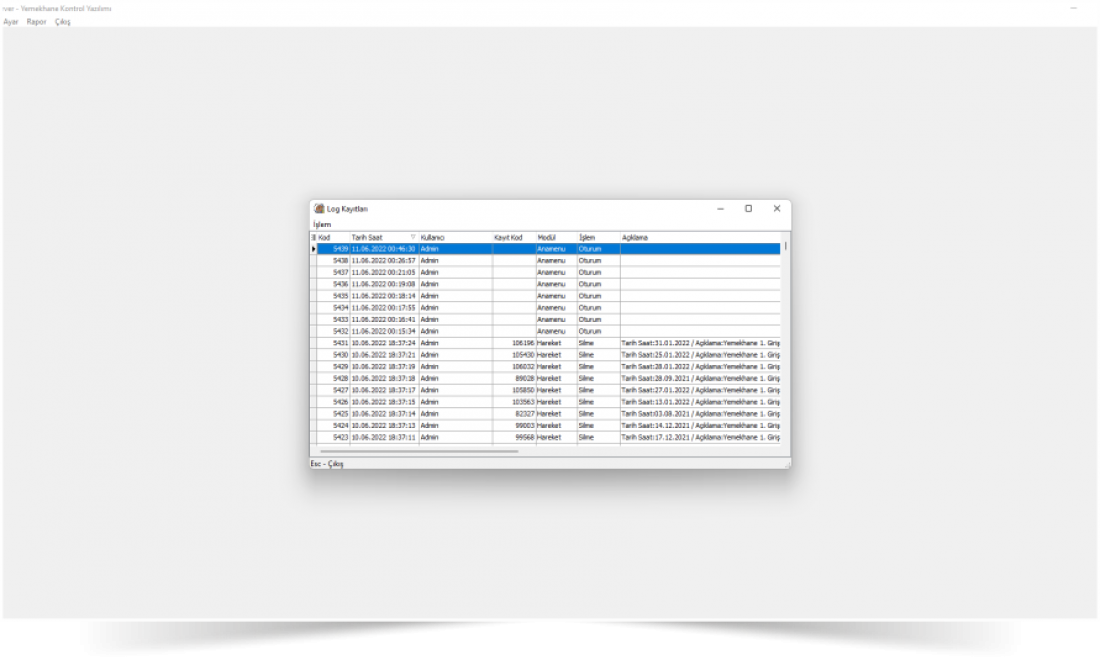 Sunucu ve istemci yazılımı tüm giriş yapılan bilgileri kullanıcı, tarih ve işlem bazında detaylı hikaye (LOG) kaydı tutmaktadır. Örneğin bir kullanıcının sisteme ne zaman kaydedildiği ve geçen zaman içinde yapılan değişiklikler kolayca önizlenebilmektedir.
