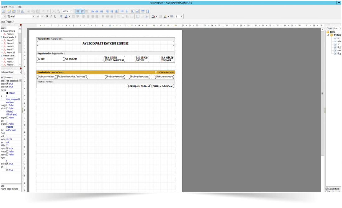 Yazılımda tanımlı tüm rapor ekranlarının tasarımı kullanıcı tarafından basitçe yapılabilmektedir. Bir rapor ekranında istemediğiniz alanlar varsa kaldırabilir, istediğiniz alanlar yoksa ekleyebilirsiniz.